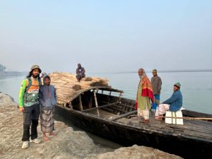 ভুল পথ, আতিথেয়তা ও সংহতি যাত্রাপথে শুকিয়ে যাওয়া শাখা নদী চিনতে না পেরে কিছুটা পথ ভুল করলেও স্থানীয়দের সহযোগিতায় পুনরায় সঠিক পথে ফেরেন তিনি। ‘চিথলিয়া দিগড়’ এলাকা পেরিয়ে ভুট্টার ক্ষেত ও বালুচর মাড়িয়ে পৌঁছান আমখাঁ খেয়া ঘাটে। মৌলভীর চর হয়ে জিগাবাড়ি বাজারে বিরতি নেন। সন্ন্যাসীর চরে—পুরাতন ব্রহ্মপুত্রের উৎসমুখ এলাকায়—নদী খনন কাজ চললেও নৌকার অভাবে প্রায় এক কিলোমিটার বালুচর পায়ে হেঁটে পাড়ি দিতে হয় তাঁকে।