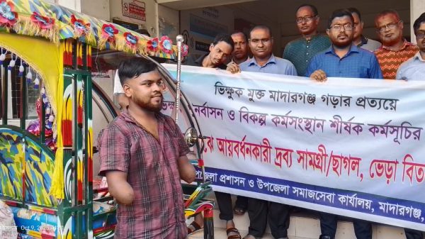 মাদারগঞ্জ প্রতিনিধি | তাং ৯ অক্টোবর ২০২৫ খ্রী. “ভিক্ষুক মুক্ত মাদারগঞ্জ গড়ার প্রত্যয়ে” — এই শ্লোগানকে সামনে রেখে মাদারগঞ্জ উপজেলা প্রশাসন ও সমাজসেবা অধিদপ্তরের উদ্যোগে ভিক্ষুক পুনর্বাসন ও বিকল্প কর্মসংস্থান read more